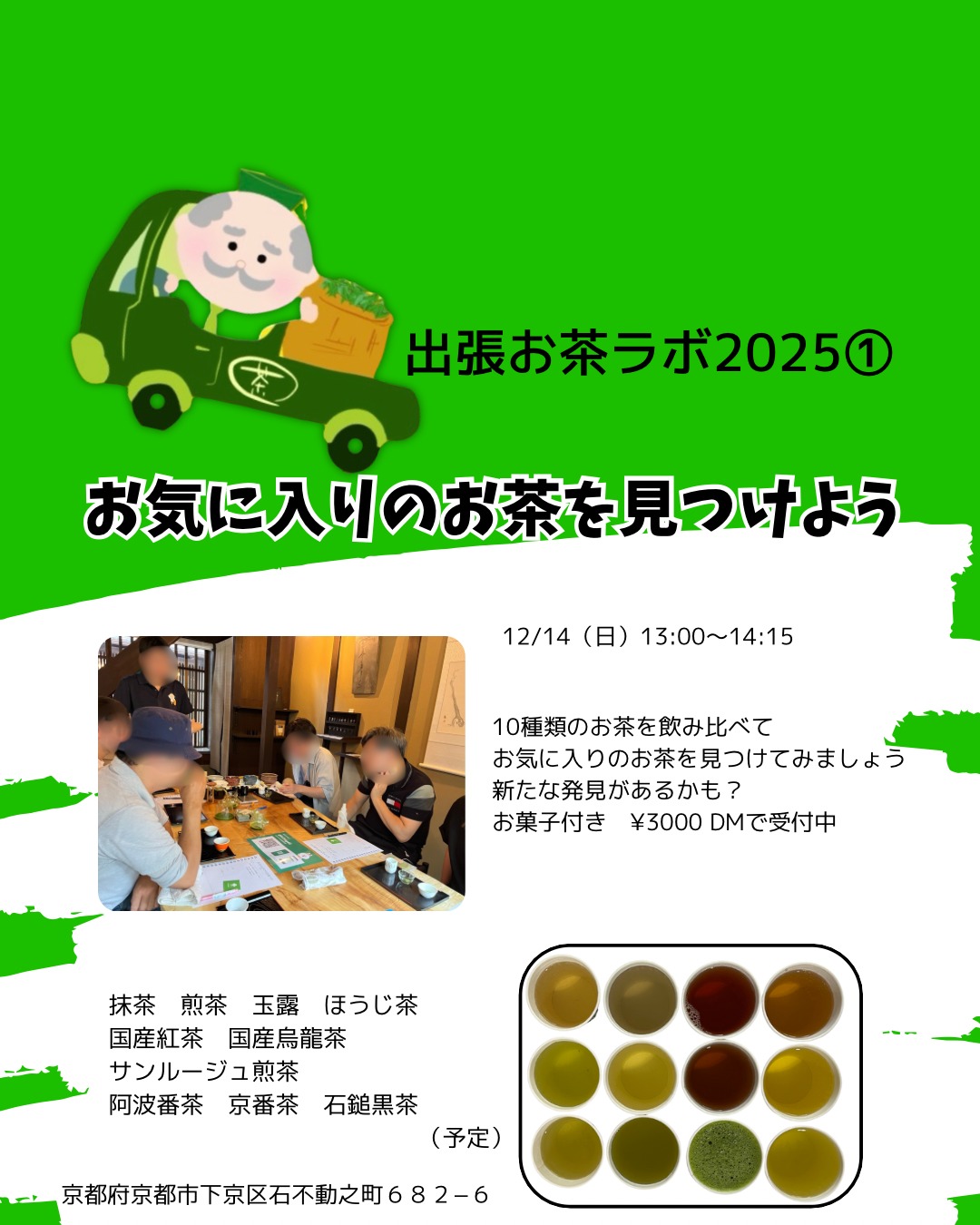 昨年楽しんでいただいたお茶ラボ今年もやります。日本茶インストラクターによる講座やおちゃはかせと遊びながら、お茶の飲み比べ体験や茶かぶき体験(お茶の飲みあてゲーム)です!